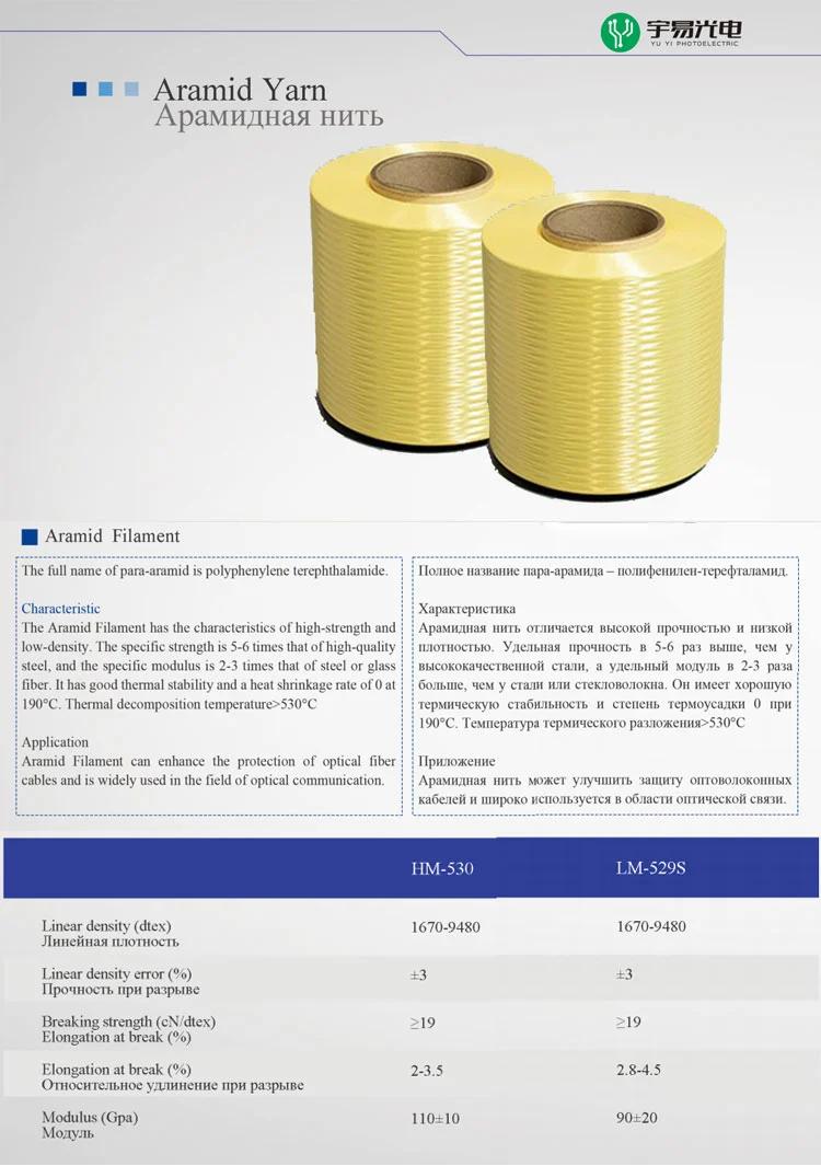 Aramid Yarn for fiber optic cable strength member